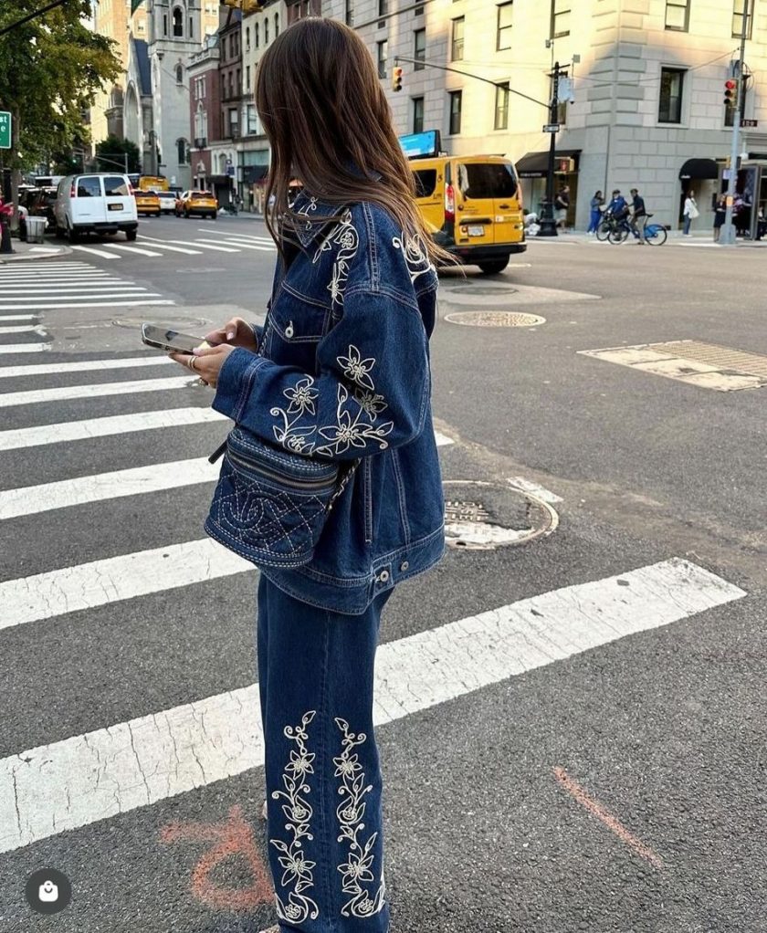 • Cazadora confeccionada en tejido denim con detalles bordados